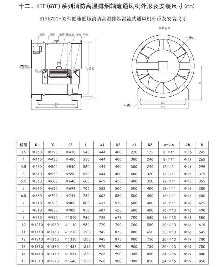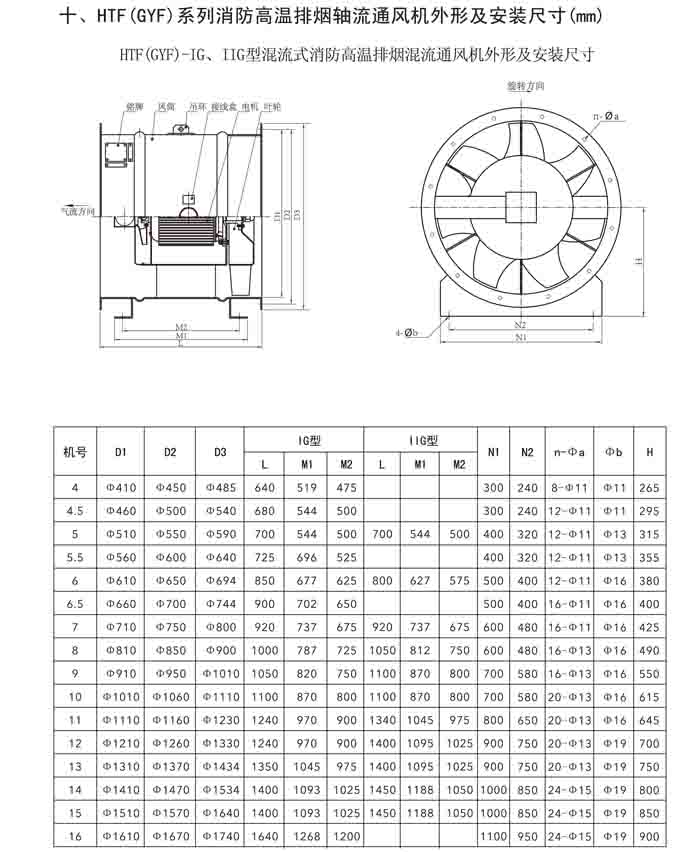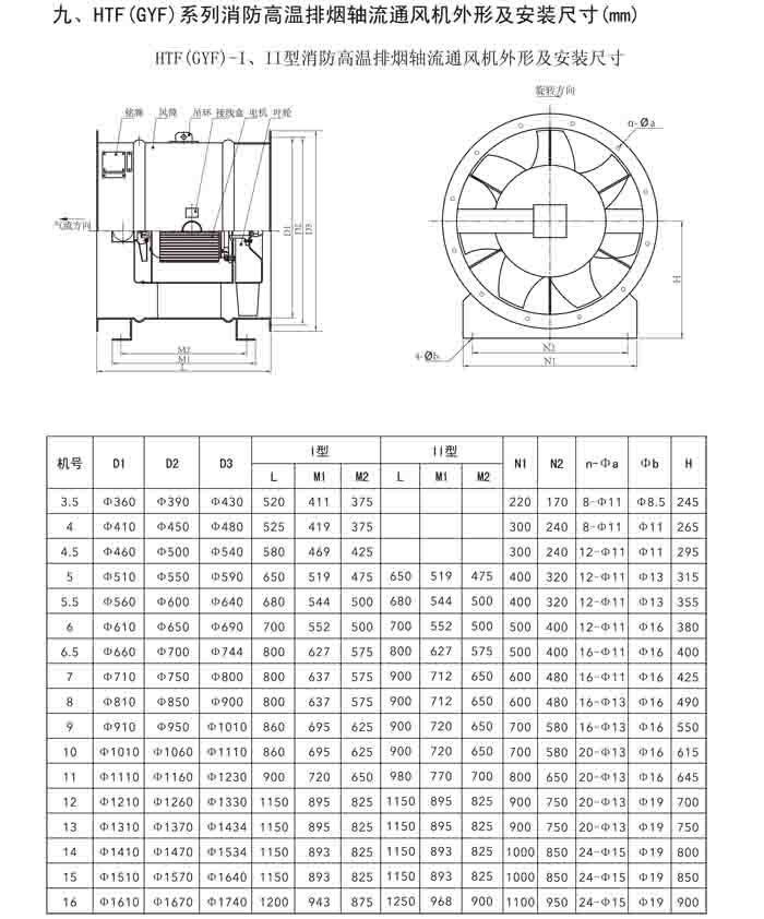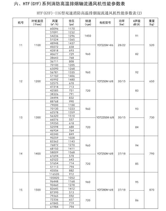 一、HTF(GYF)-I、II、III、D、G、IIG 系列消防排煙軸流風機