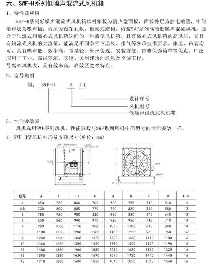 二、SWF(HLF、GXF)-I、II、H 系列高效混流風機
